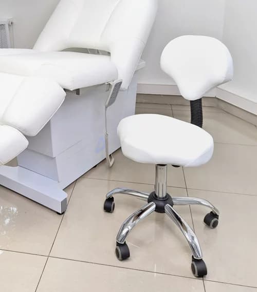 Мягкий эргономичный и комфортный стул со спинкой для вашего кабинета с регулировкой по высоте на хромированном основании. Удобство даже при проведении длительной процедуры.